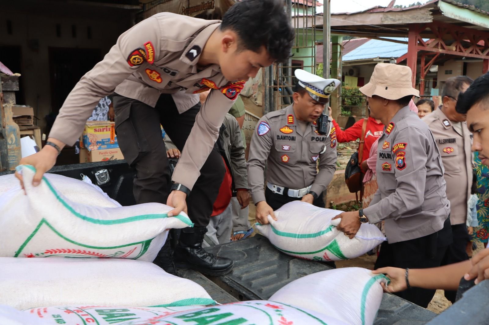 Penyaluran bantuan difokuskan kepada warga yang sedang menjalani masa transisi pemulihan pascabencana banjir dan tanah longsor. Dalam kegiatan tersebut, Polres Tapteng mendistribusikan paket bantuan logistik yang terdiri dari 30 Karung Beras (kemasan 25 kg per karung), 40 Kardus Mie Instan, 3 Kardus Ikan Kaleng (Sarden)