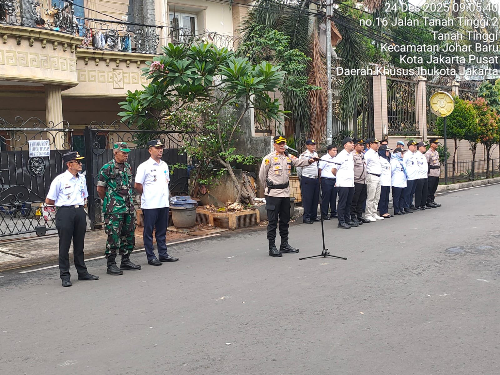 Jakarta Pusat — Dalam rangka memberikan pelayanan dan pengamanan maksimal pada perayaan Malam Natal 2025, Polsek Johar Baru Polres Metro Jakarta Pusat menggelar Apel Gelar Pasukan Pengamanan Malam Natal 2025 M di wilayah hukum Kecamatan Johar Baru. Kegiatan tersebut dilaksanakan pada Rabu (24/12/2025) pukul 09.00 WIB bertempat di Bundaran Kelapa RW 001, Jalan Tanah Tinggi III, Kelurahan Tanah Tinggi, Kecamatan Johar Baru, Jakarta Pusat.