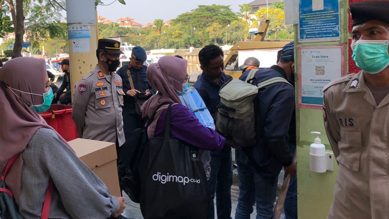 Dalam pengamanan yang dilaksanakan, AKP Abdul Kadir, S.H. selaku Perwira Pengendali Polres Kepulauan Seribu. mewajibkan penerapan prokes ketat bagi seluruh wisatawan yang akan menaiki kapal wajib menunjukkan hasil scan barcode PeduiLindungi.