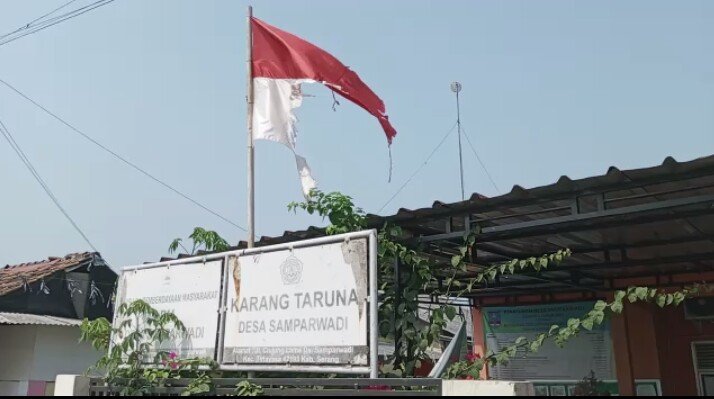 Ketika awak media ingin mengkonfirmasi ke kantor balai desa Samparwadi mengenai bendera yang lusuh dan sobek dan tidak sedap dipandang mata,