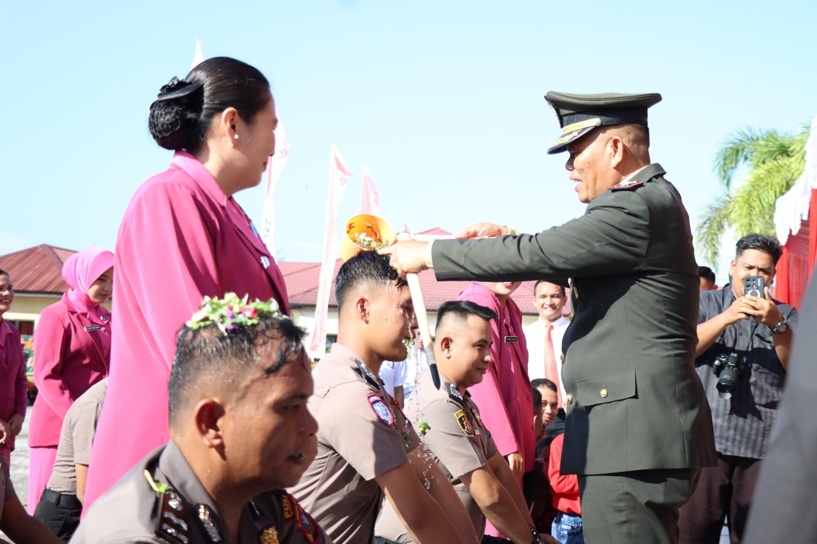 Usai pelaksanaan upacara, dalam momen tersebut Kapolres Tapanuli Tengah AKBP Wahyu Endrajaya, SIK., M.Si bersama Wakil Bupati Tapanuli Tengah Mahmud Efendi Lubis dan undangan Forkopimda menyiramkan tradisi air kembang kepada personil yang menerima kenaikan pangkat. “Semoga berkah dan semakin semangat dalam melaksanakan tugas sebagai anggota Polri” ujarnya