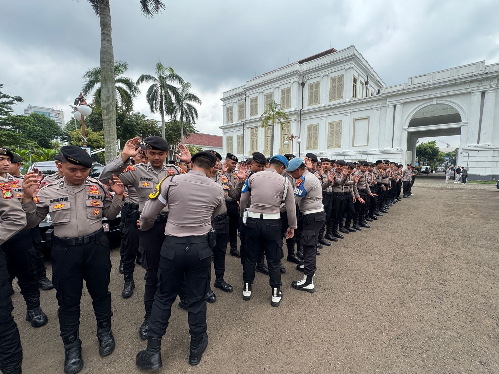 Jakarta Pusat – Sebanyak 212 personel Polri dikerahkan dalam Apel Pengamanan rencana aksi unjuk rasa (Unras) di Kantor Direktorat Jenderal Kekayaan Negara (DJKN) Kementerian Keuangan RI, Jalan Lapangan Banteng Timur, Pasar Baru, Sawah Besar, Jakarta Pusat, Jumat (6/2/2026). Apel yang bertujuan memastikan kesiapan personel dalam memberikan pelayanan serta pengamanan jalannya aksi tersebut dipimpin langsung Kapolsek Sawah Besar KOMPOL Rahmat Himawan, S.Sos., M.H. Kegiatan apel dilaksanakan sekitar pukul 10.00 WIB sebagai rangkaian persiapan pengamanan aksi yang direncanakan berlangsung pukul 13.00 WIB.