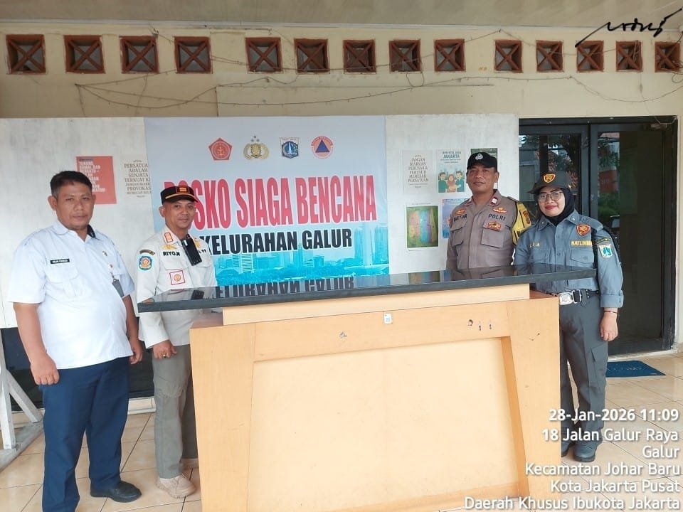 Jakarta Pusat — Dalam rangka meningkatkan kesiapsiagaan menghadapi potensi bencana di musim hujan, Bhabinkamtibmas Kelurahan Galur, Aiptu Baktiar, bersama unsur 3 Pilar mengaktifkan Posko Siaga Bencana Kelurahan Galur, Rabu (28/1/2026) siang. Kegiatan berlangsung di Posko Siaga Bencana Jalan Galur Jaya RT 001/04, Kecamatan Johar Baru, Jakarta Pusat.