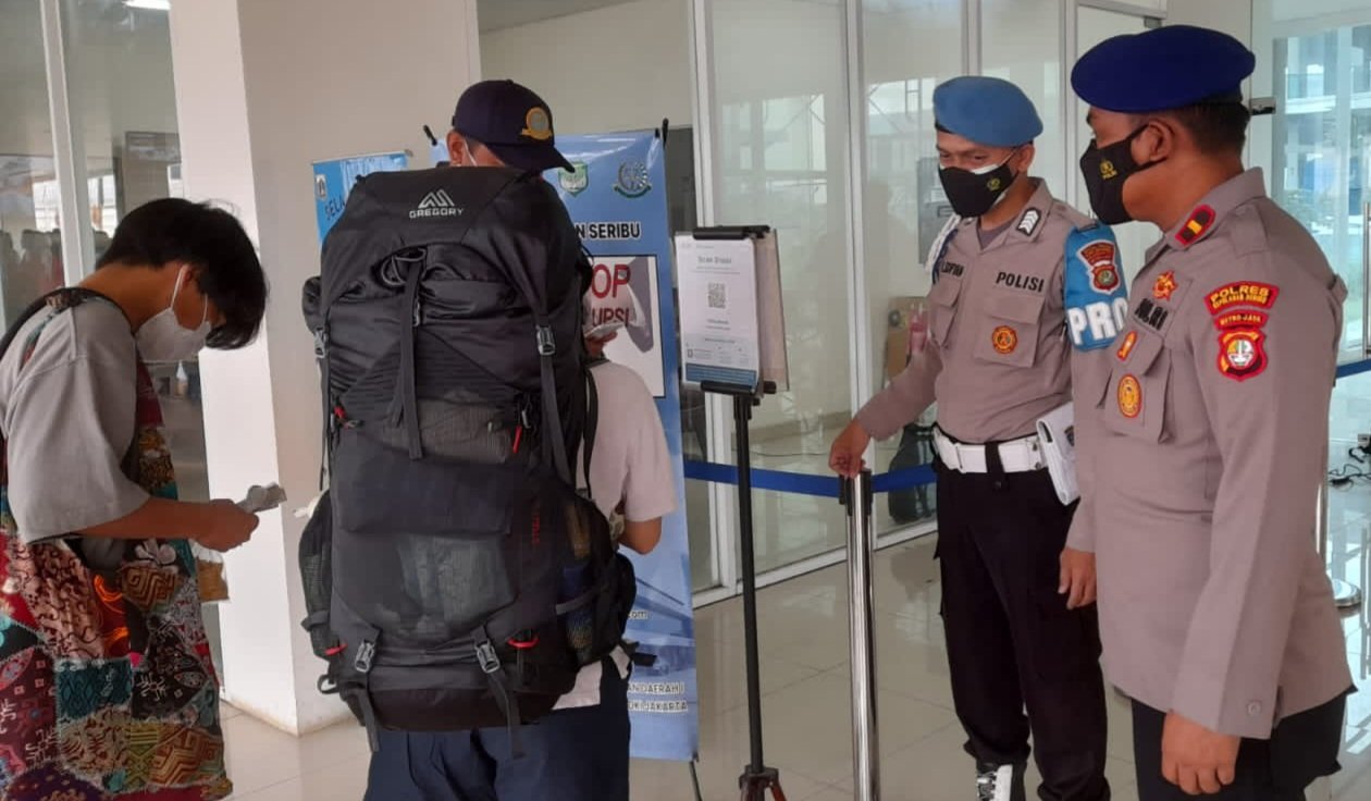 Dalam pelaksanaan tugas pengamanan dermaga, personil Polres Kepulauan Seribu menghimbau kepada seluruh penumpang untuk scan PeduliLindungi serta menerapkan protokol kesehatan baik di area dermaga maupun di dalam kapal.