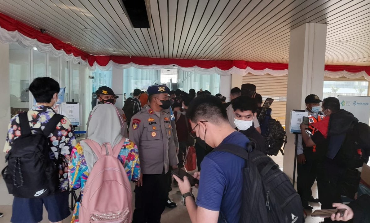 AKP Achmad Salim selaku Perwira Pengawas Polres Kepulauan Seribu dan anggota yang melaksanakan pengamanan dermaga, mewajibkan seluruh penumpang untuk menunjukkan hasil scan aplikasi PeduliLindungi.