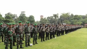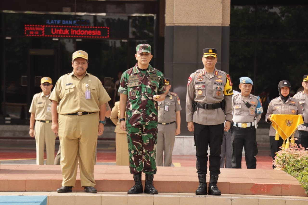 Jakarta Barat, Polres Metro Jakarta Barat bersama 3 Pilar melaksanakan apel pergeseran pasukan di halaman walikota Jakarta Barat, Senin, 12/2/2024.