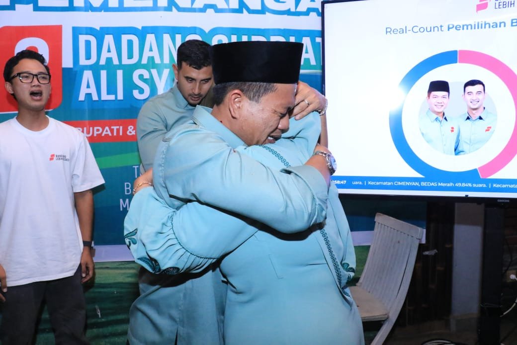 “Alhamdulillah tentunya kami sangat bersyukur dengan hasil quick count ini karena suara yang masuk sudah 94 persen. Alhamdulillah Dadang Supriatna-Ali Syakieb menang 56,85 persen,” kata Dadang Supriatna.
