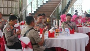 Jakarta – Setelah dilaksanakan serah terima jabatan kepada Kapolres Metro Depok yang baru Kombes Pol. Arya Perdana serta para Pejabat Utama Polda Metro (PJU) melanjutkan rangkaian kegiatan Pisah Sambut yang dilaksanakan di Lobby Gedung Promoter Polda Metro Jaya, Jumat (26/01/2024)