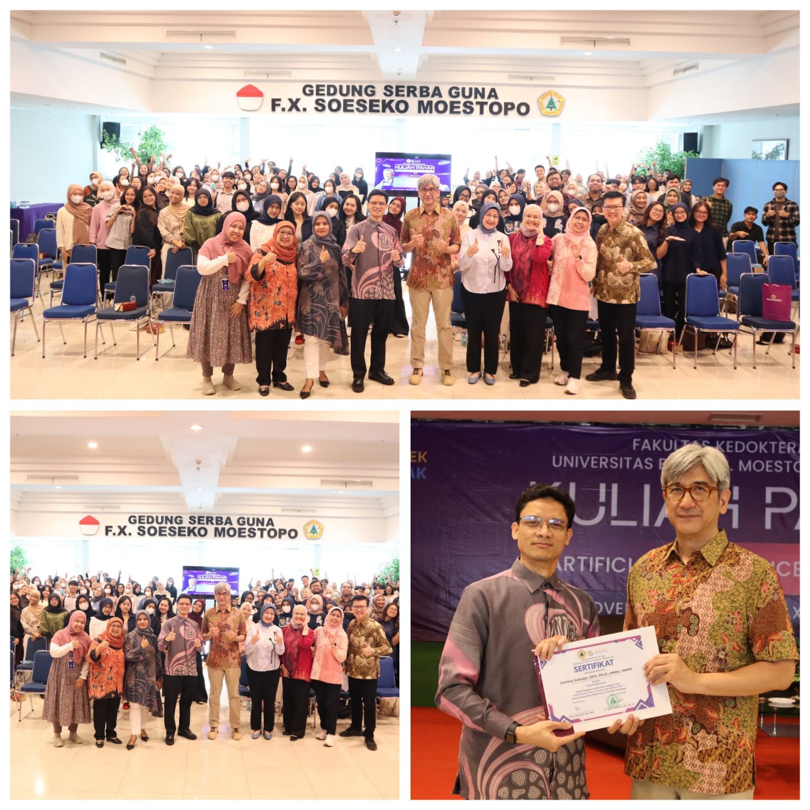 “Kami berencana mengadakan kuliah pakar ini empat kali dalam satu tahun agar menjadi kegiatan rutin dan konsisten, baik di FKG maupun di Rumah Sakit Gigi dan Mulut (RSGM) Moestopo. Kami juga bersyukur dapat kembali bertemu dengan Prof. Cortino setelah enam tahun, dan terima kasih kepada sahabat kami, drg. Maretaningtias Dwi Ariani, M.Kes., Ph.D., Sp.Prost, atas bantuannya dalam mempertemukan kembali dengan beliau,” lanjutnya.