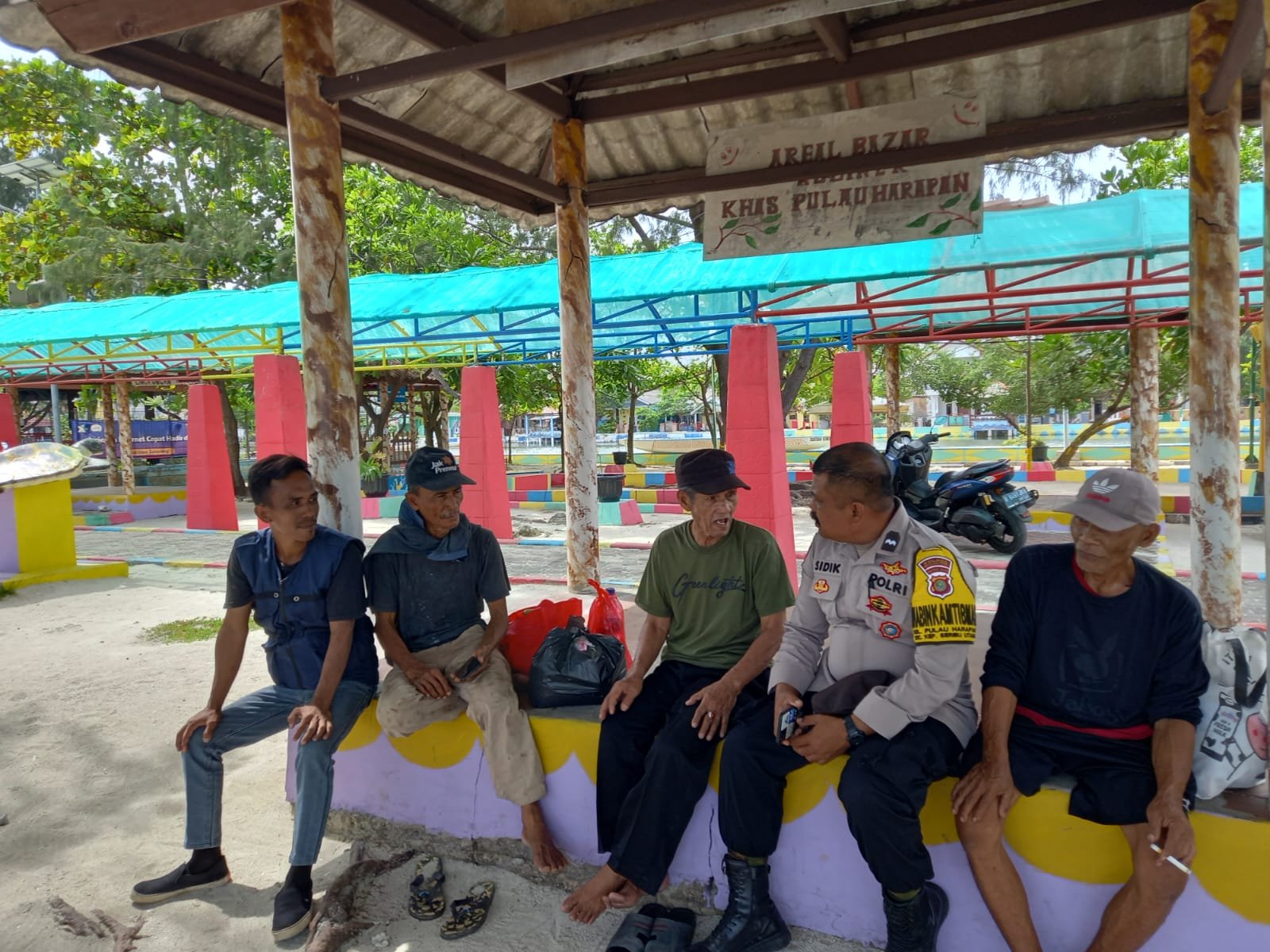 Bhabinkamtibmas Pulau Harapan, Polsek Kepulauan Seribu Utara, Polres Kepulauan Seribu, Aipda Sidik melaksanakan giat sambang warga di RPTRA Nyiur Melambai di Pulau Harapan Kepulauan Seribu Utara, Senin (06/02/2023).