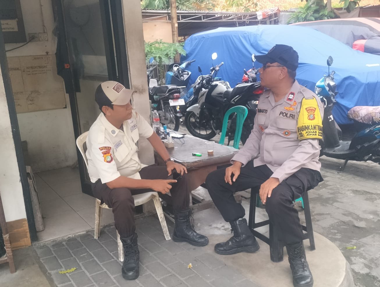 Dalam kegiatan tersebut, Aiptu Sunarto menyambangi Bapak Tirta Kusnaray, yang bertugas sebagai security Gedung UKM, untuk melakukan dialog kamtibmas dan berbagi informasi situasi keamanan sekitar.
