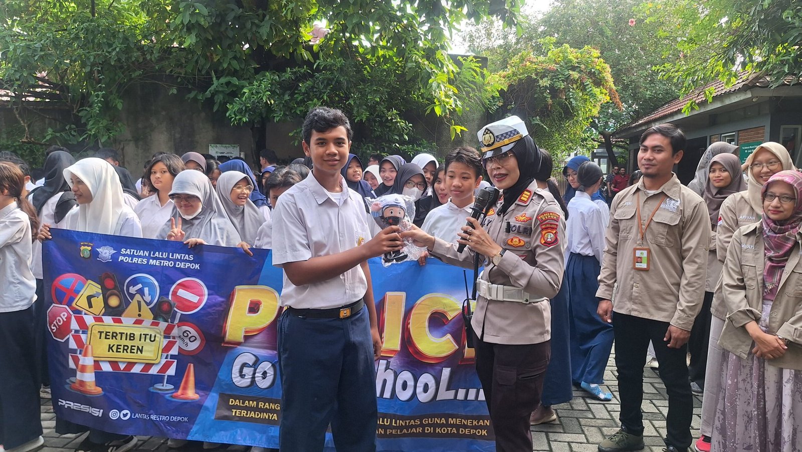 Hadirnya Satlantas Polres Metro Depok dalam rangka sosialisasikan anak murid tentang “Tatatertib berlalulintas dan Kenakalan remaja” serta melarang keras perundungan