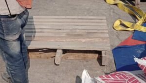 Dikarenakan pekerjaan dari pihak PT. tidak sesuai dengan standar operasional pekerja, terlihat penarikan batu kerikil dari lantai dasar tanpa adanya pengait atau jaring untuk pengaman.