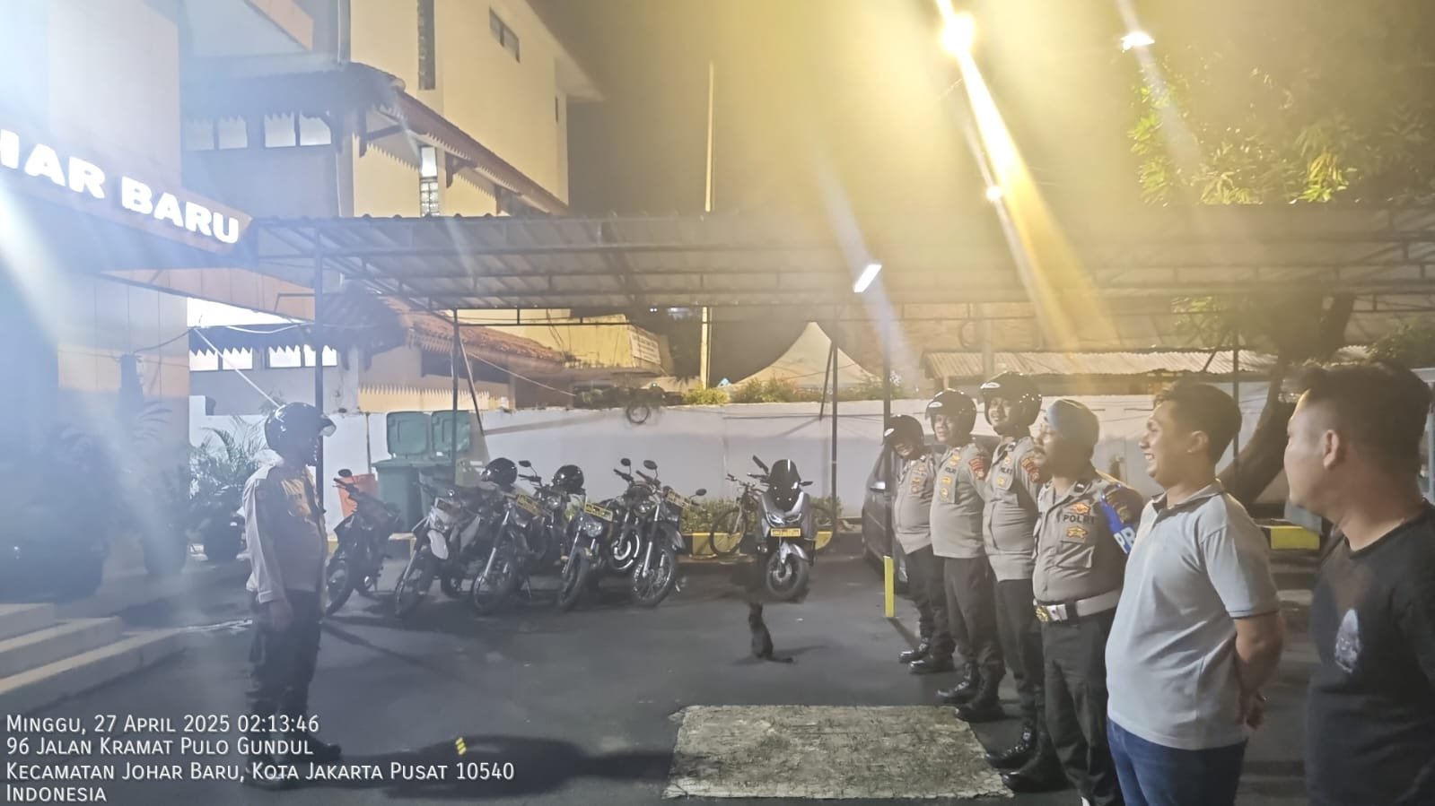 refubliknews.com, || Jakarta Pusat – 27 April 2025 – Polsek Johar Baru menggelar Apel Patroli Cipta Kondisi untuk mengantisipasi gangguan keamanan dan ketertiban masyarakat (Guantibmas) pada Minggu dini hari, pukul 02.02 WIB. Apel ini berlangsung di halaman Polsek Johar Baru dan dipimpin langsung oleh Aiptu Eko Parwanto, Panit III Samapta. Kegiatan ini melibatkan 10 anggota dari Polsek Johar Baru.