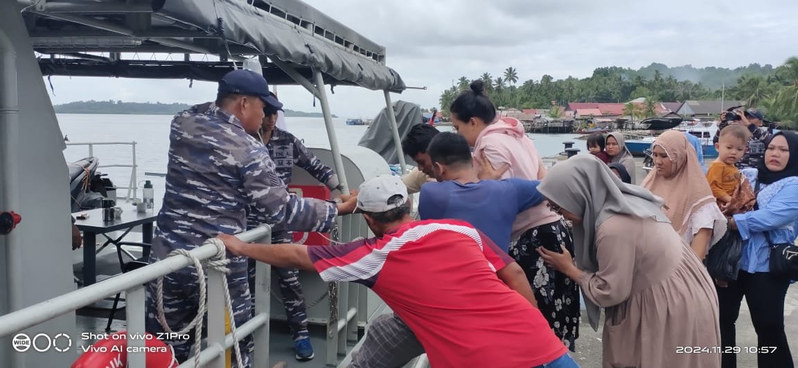 refubliknews.com TNI AL, Nias Selatan,- Aksi Cepat Tanggap KAL Hinako I- 2-19 dan Pos Binpotmar Pulau Tello Lanal Nias melaksanakan evakuasi warga yang mengalami pendarahan akibat keguguran yang menimpa Nisa Nasution (23 Tahun), dari Dermaga Perikanan Pulau Tello menuju Telukdalam Kabupaten Nias Selatan, Jumat (29/11/2024).
