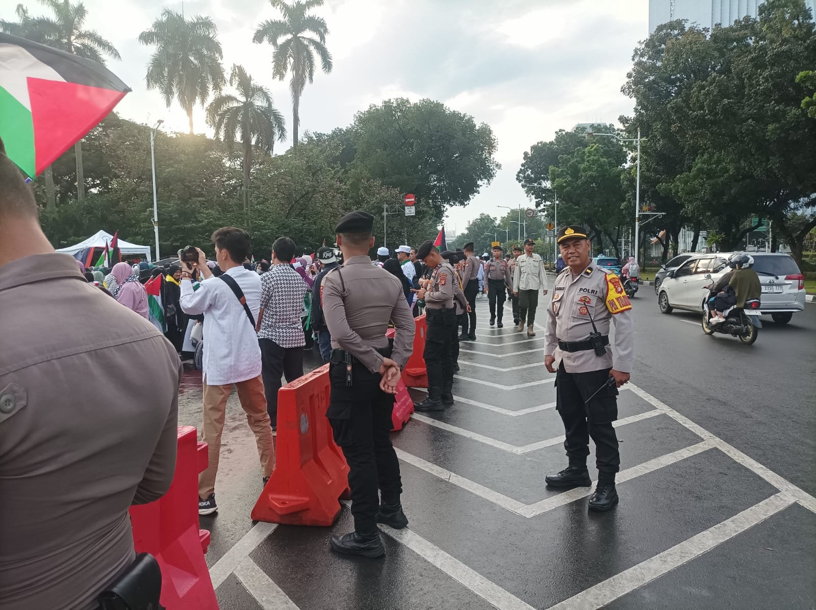 Sementara itu, Kapolsek Metro Gambir, Kompol Rezeki R Respati, selaku Kapam Objek, menuturkan situasi di lokasi saat ini masih aman dan kondusif.