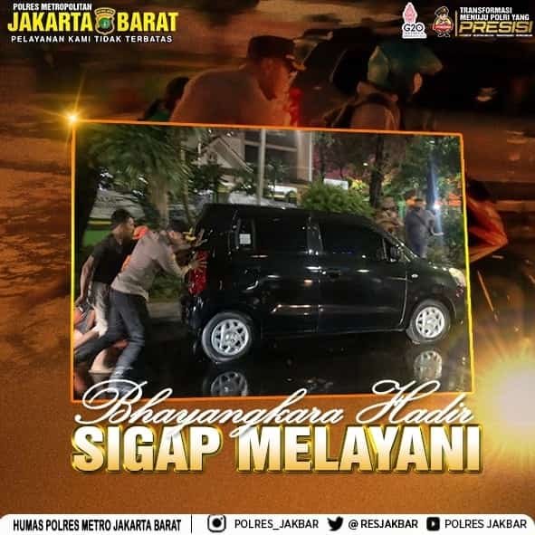 Bahkan terlihat Kapolsek Tanjung Duren Kompol Muharram Wibisono tanpa malu mau mendorong sejumlah mobil yang mengalami kesulitan saat melintasi genangan air