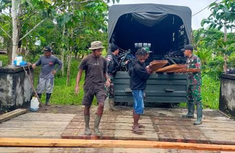 Tindakan anggota Satgas Yonif 143/TWEJ disambut gembira warga karena merasa kesulitan mengangkut kayu pengganti untuk memperbaiki jembatan yang tempatnya jauh dan tidak ada kendaraan untuk mengangkut.