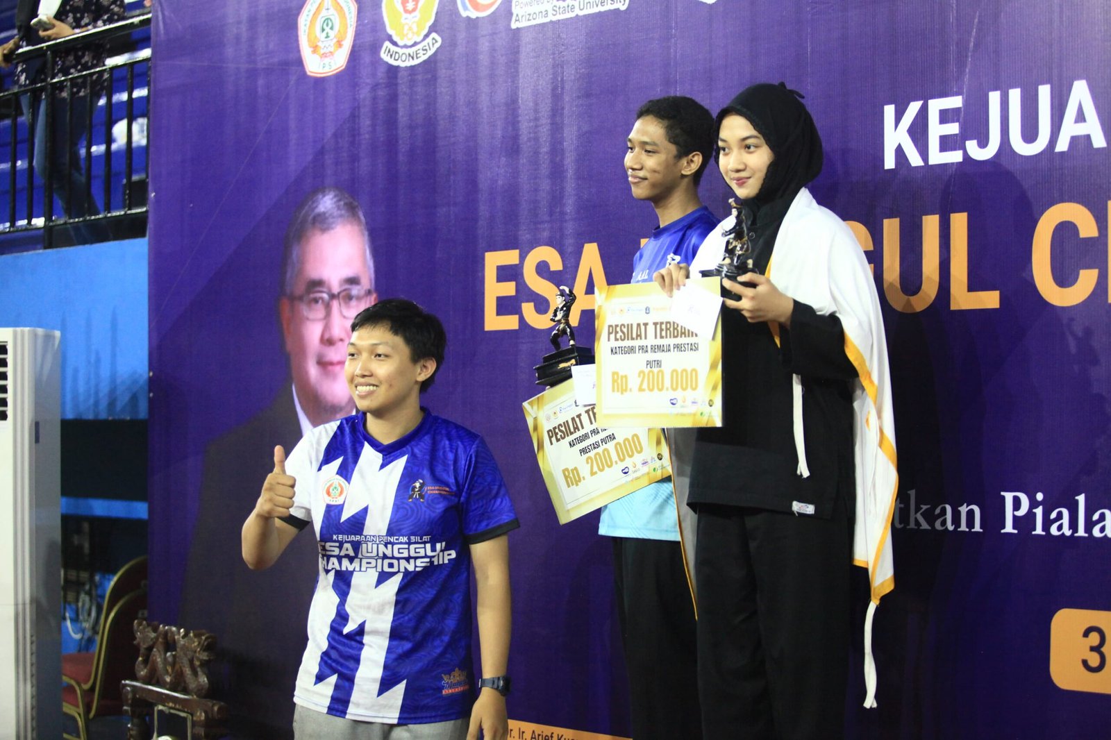 refubliknews.com,- JAKARTA – Kejuaraan Pencak Silat Esa Unggul Championship Tingkat Nasional yang digelar selama dua hari di GOR Ciracas, Jakarta Timur, menghasilkan para juara di berbagai kategori usia. Almira, peserta kategori remaja, berhasil meraih juara satu dan menyandang gelar Atlet Terbaik pada final yang berlangsung Minggu (01/02/2026).