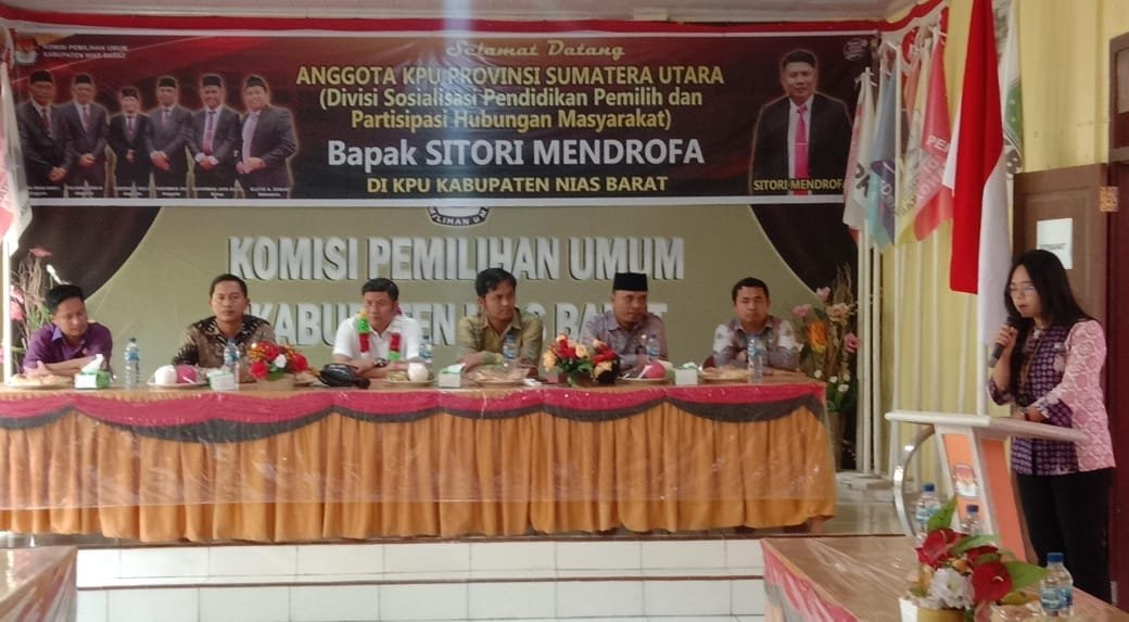 Anggota KPU Provinsi Sumatera Utara divisi sosialisasi pendidikan pemilih dan partisipasi hubungan masyarakat berkunjung di KPU Nias Barat mendorong untuk sosialisasi pentingnya partisipasi masyarakat dalam pemilu, Jum’at 12 Januari 2024 bertempat di kantor KPUD Nias Barat