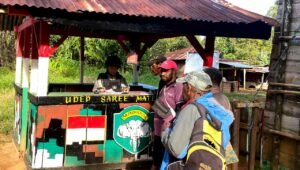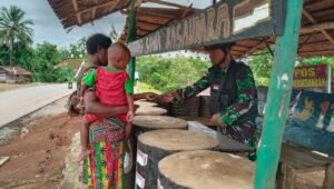 Boven Digoel~Satgas Pamtas Statis RI – PNG Yonif RK 111/KB yang melaksanakan tugas pengamanan diwilayah perbatasan darat dibawah Kolakops Korem 174/Anim Ti Waninggap melakukan pemeriksaan terhadap masyarakat yang akan keluar masuk Wilayah Perbatasan Papua Selatan, Senin (04/03/2024),