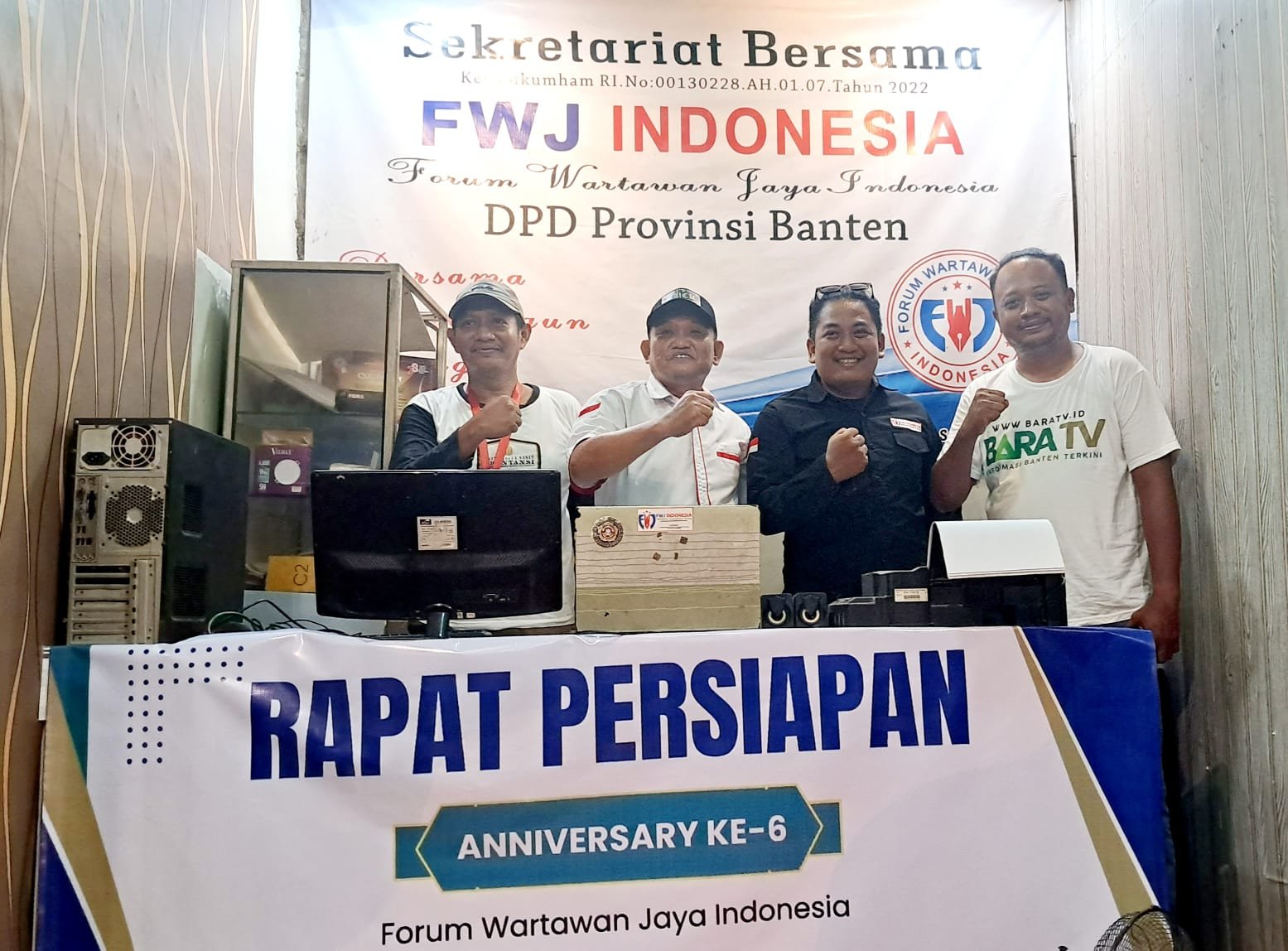 refubliknews.com,- BANTEN | Panitia Anniversary ke 6 Forum Wartawan Jaya (FWJ) Indonesia baru saja menggelar rapat tehnis pelaksanaan kegiatan. Rapat panitia yang dilaksanakan di sekretariat FWJ Indonesia DPD Provinsi Banten yang beralamat di jalan raya Mauk, KM 10, Kelurahan Sepatan Kabupaten Tangerang juga dihadiri jajaran Dewan Pimpinan Pusat (DPP) Forum ini.