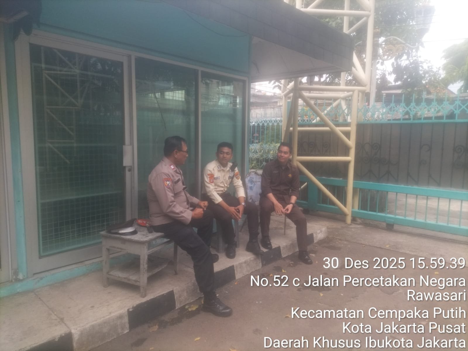 Jakarta Pusat – Dalam rangka menjaga situasi keamanan dan ketertiban masyarakat (kamtibmas) tetap aman dan kondusif menjelang perayaan Natal 2025 dan Tahun Baru 2026 (Nataru), Polsek Johar Baru melalui Bhabinkamtibmas Kelurahan Johar Baru melaksanakan patroli dan sambang ke Gedung PNRI, Selasa (30/12/2025) sore.