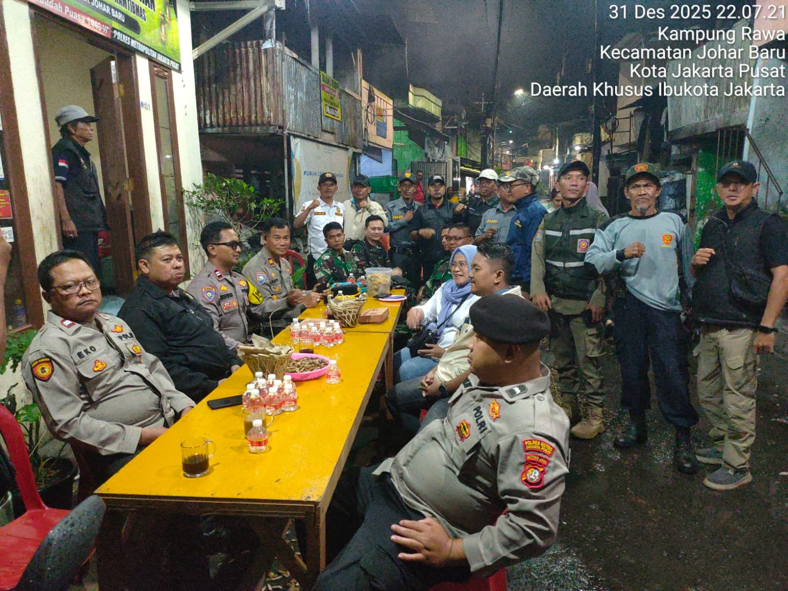 Jakarta Pusat – Guna mengantisipasi potensi gangguan keamanan dan ketertiban masyarakat (guantibmas) pada malam pergantian Tahun Baru 2026, jajaran Polsek Johar Baru bersama unsur TNI, pemerintah kelurahan, dan elemen masyarakat melaksanakan kegiatan pengamanan terpadu di Pos RW 03 Kelurahan Kampung Rawa, Kecamatan Johar Baru, Jakarta Pusat, Rabu (31/12/2025) malam.