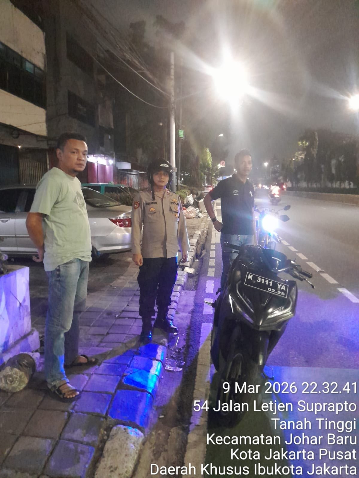 Kegiatan tersebut dilaksanakan pada Senin (9/3/2026) pukul 22.00 WIB di kawasan Jalan Letjen Suprapto, Kelurahan Tanah Tinggi, Kecamatan Johar Baru, Jakarta Pusat. Patroli dipimpin oleh Aiptu Zulfikar Hasibuan selaku Perwira Pengendali (Padal) dan didampingi Iptu Wisnu selaku Panit Opsnal Intelkam, Aiptu Sukirno Panit Samapta, Aiptu Antonius AW selaku Kapolsubsektor Tanah Tinggi, serta personel Unit Reskrim Aiptu Budiheri dan Bripka Suparyanto.
