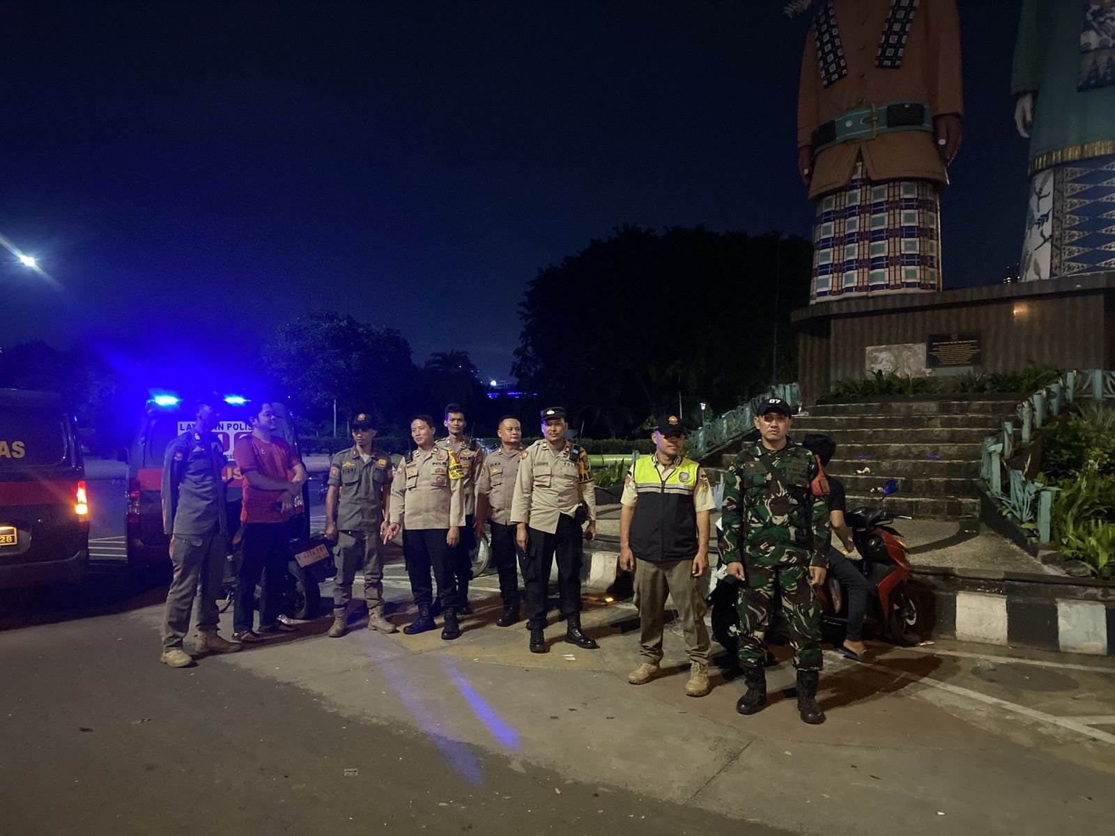 Personel yang terlibat dalam patroli malam tersebut terdiri dari anggota Polsek, Babinsa, dan Satpol PP sebagai bagian dari sinergi Tiga Pilar dalam menjaga keamanan wilayah Kemayoran.