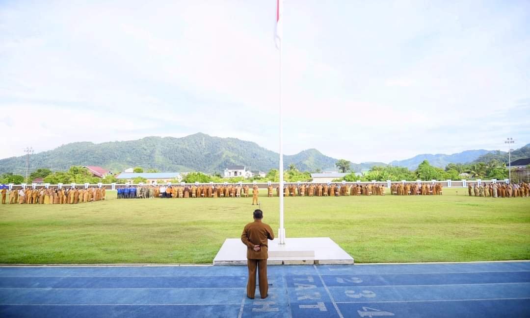 PANDAN- Sekretaris Daerah Kabupaten (Sekdakab) Tapanuli Tengah (Tapteng), Dr. Erwin Hotmansah Harahap, S.STP, MM pimpin Apel Pagi Gabungan Aparatur Sipil Negara (ASN) Pemerintah Kabupaten (Pemkab) Tapteng, yang digelar di Lapangan Sepakbola Pandan, Senin (04/11/2024).