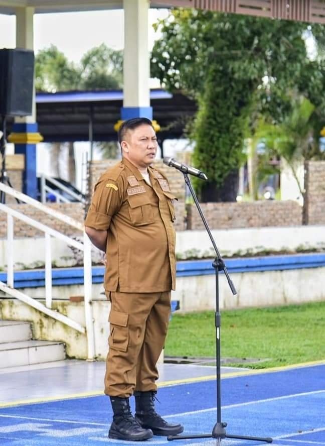 pimpin Apel Pagi Gabungan Aparatur Sipil Negara (ASN) Pemerintah Kabupaten Tapanuli Tengah (Tapteng), yang digelar di Lapangan Sepakbola Pandan, Senin (25/11/2024).