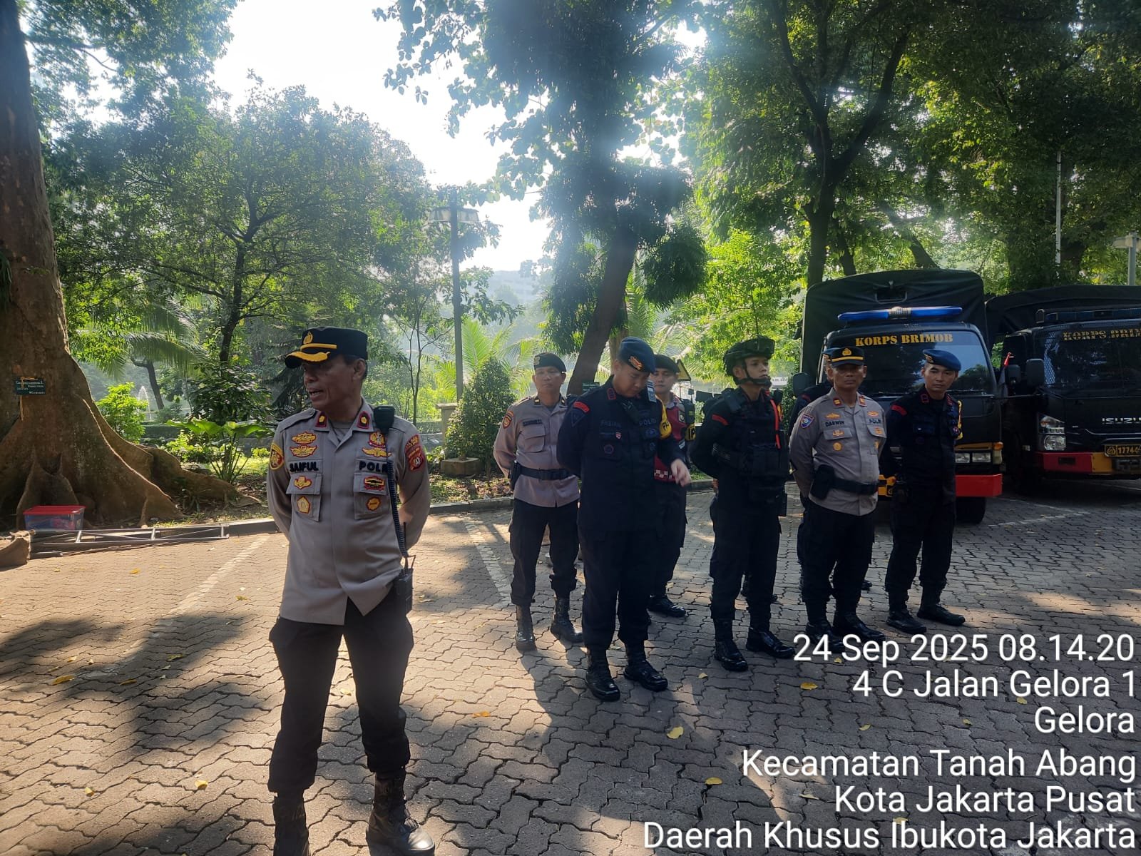 Rincian pasukan meliputi Brimob PMJ 1 SSK (80 personel) dilengkapi 1 unit AWC; Korps Brimob Kelapa Dua 2 SSK (188 personel) dengan dukungan 1 unit AWC, 2 unit truk box, 2 unit double cabin, serta 1 unit rantis GAG; Gaaum PMJ 42 personel; Propam Paminal 3 personel; serta 14 personel dari Polsek Johar Baru. Unsur LHK atas dan bawah juga dilibatkan sebagai bagian dari struktur pengamanan.