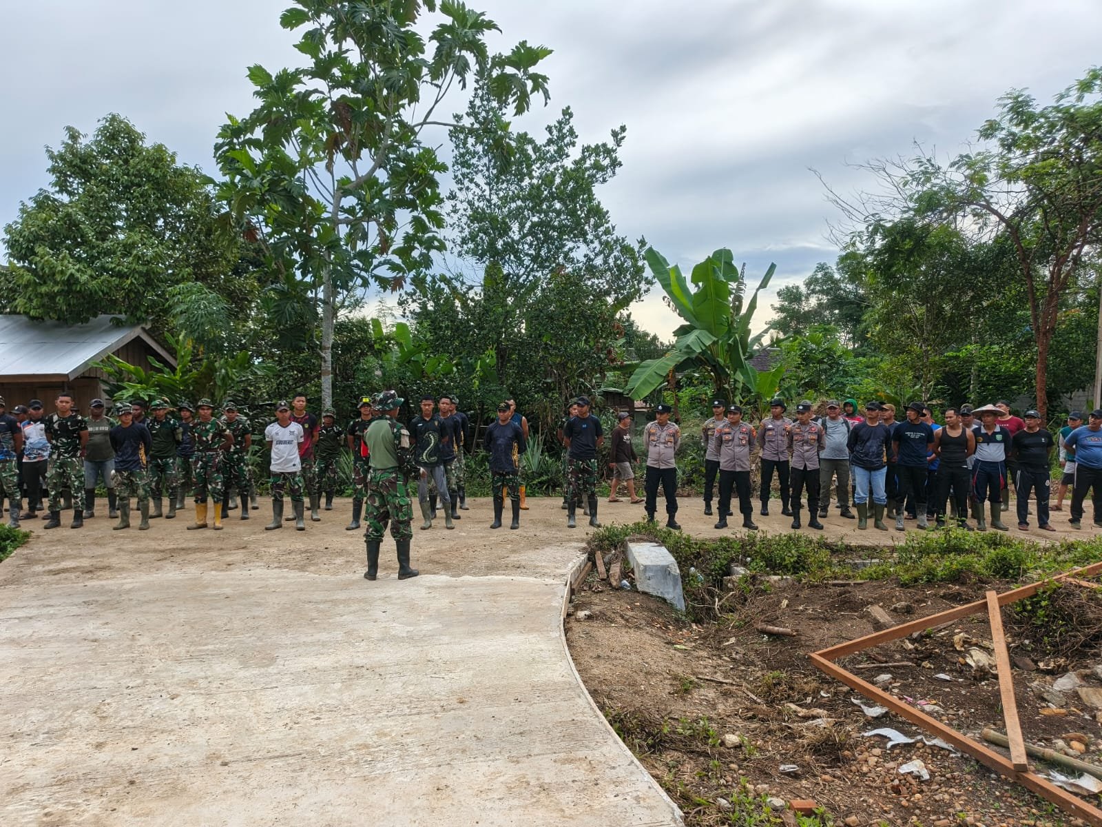 Usai apel, personel Satgas, anggota Polres dan masyarakat langsung menuju titik pekerjaan dengan penuh semangat, memperlihatkan wujud nyata kemanunggalan dan gotong royong dalam membangun desa.