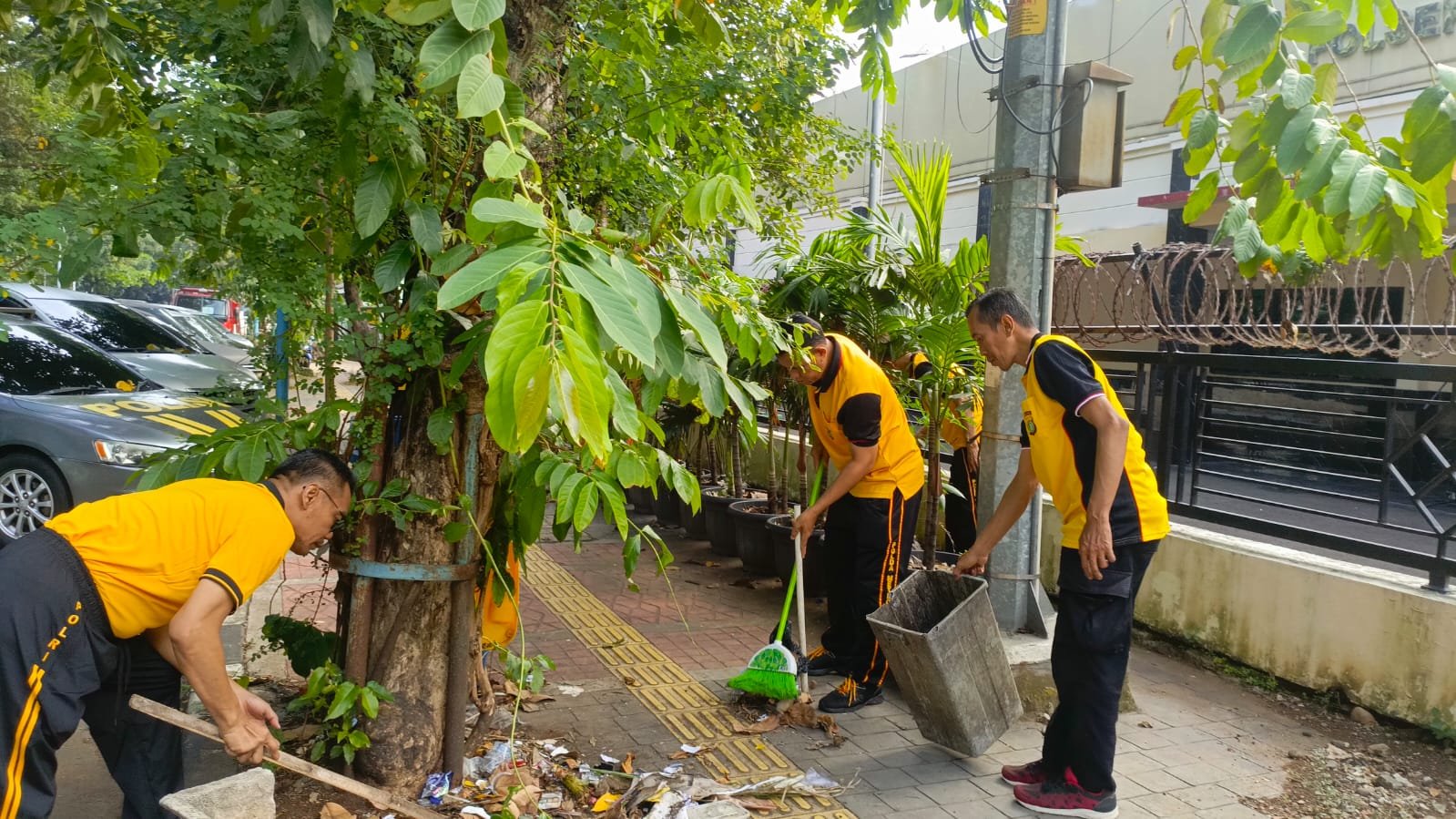 Kegiatan kemudian ditutup dengan kerja bakti membersihkan lingkungan sekitar mako sebagai bentuk kepedulian terhadap kebersihan dan kerapihan lingkungan kerja.