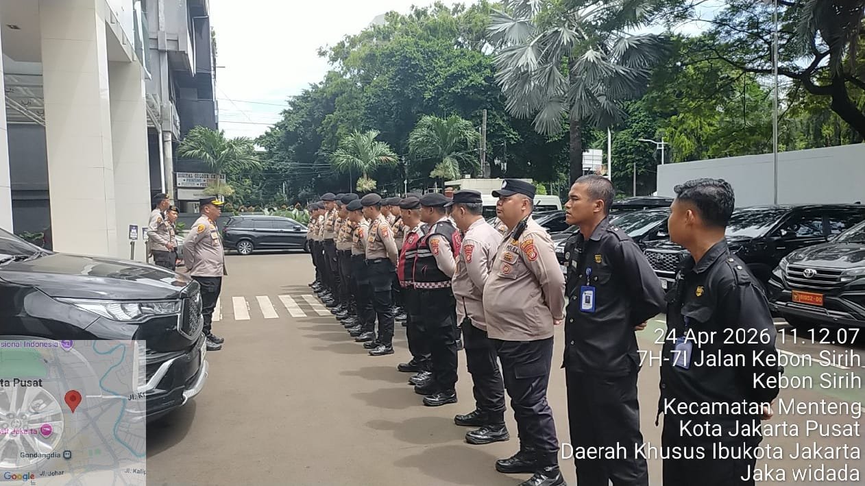 Jakarta Pusat – Dalam rangka memastikan situasi keamanan dan ketertiban masyarakat tetap kondusif, jajaran Polsek Metro Menteng melaksanakan apel pasukan pelayanan pengamanan guna mengantisipasi kegiatan unjuk rasa (unras) di Kantor Badan Gizi Nasional (BGN), Jalan Kebon Sirih No. 1, Menteng, Jakarta Pusat, Jumat (24/4/2026).