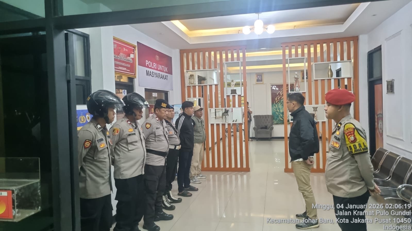 Jakarta Pusat – Dalam upaya menjaga situasi keamanan dan ketertiban masyarakat (kamtibmas) tetap aman dan kondusif, Polsek Johar Baru melaksanakan Apel Patroli Cipta Kondisi Antisipasi Guantibmas pada Minggu (4/1/2026) pukul 02.00 WIB di halaman Mapolsek Johar Baru.
