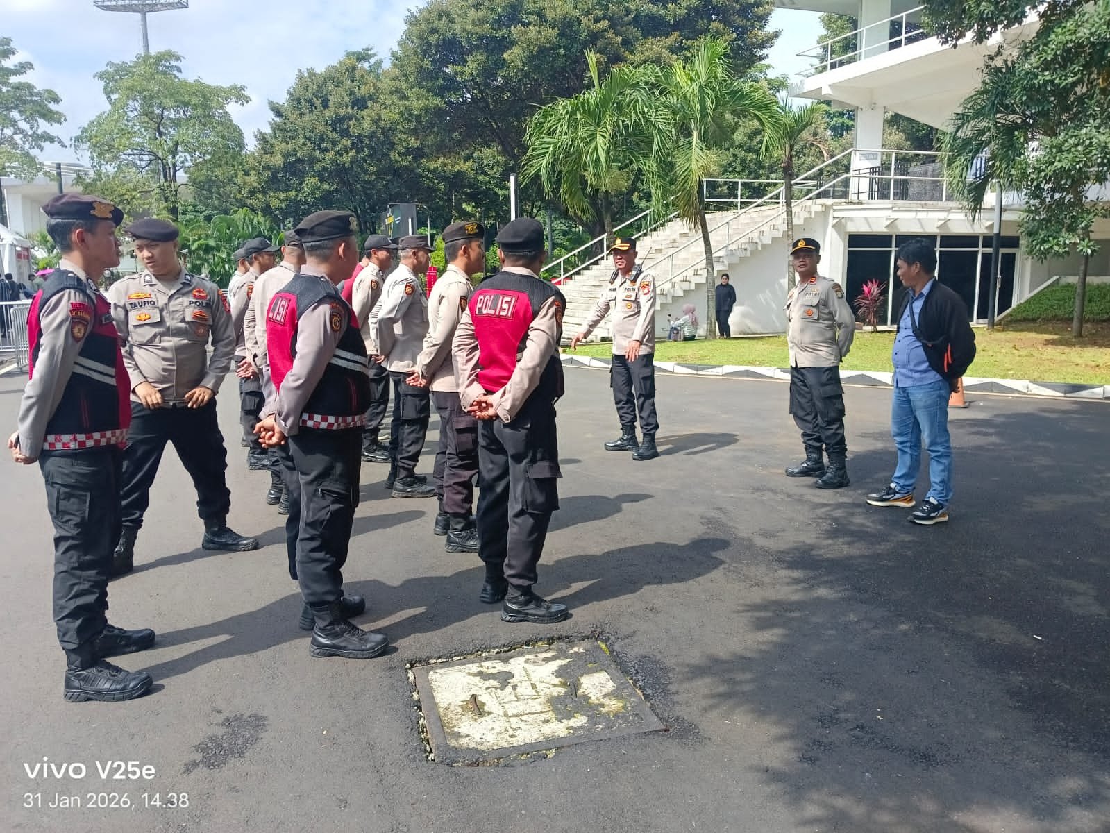 Jakarta Pusat — Dalam rangka memberikan pelayanan dan pengamanan maksimal kepada masyarakat, jajaran Polres Metro Jakarta Pusat melaksanakan apel kesiapan pengamanan konser Dua Delapan Padi Reborn yang digelar di Gedung Tennis Indoor GBK Senayan, Kecamatan Tanah Abang, Jakarta Pusat, Sabtu (31/1/2026) sore.