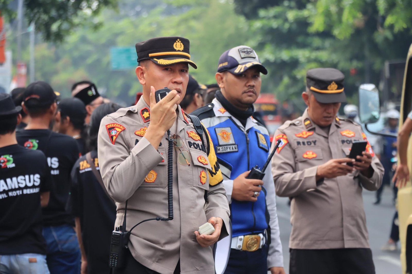 Rute pengamanan dimulai dari Alun-Alun Kota Bekasi menuju Kantor KPU Kota Bekasi. Personel disebar di sepanjang Jalan Ir. H. Juanda untuk mengawal konvoi massa partai pendukung dari PDIP, Partai Demokrat, Partai Gerindra, dan PKB, serta mengatur arus lalu lintas agar tetap lancar dan tidak mengganggu aktivitas masyarakat umum.