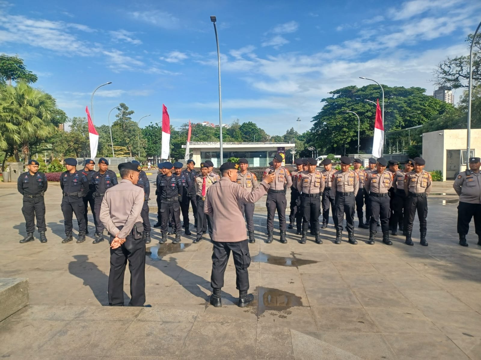 Apel pengamanan diikuti total 56 personel gabungan yang terdiri dari Polsek Sawah Besar, Brimob Polda Metro Jaya, Pam Obvit, Tombak 673 PMJ, serta personel lalu lintas Polres Metro Jakarta Pusat. Dalam arahannya, pimpinan apel memberikan penjelasan menyeluruh terkait pembagian sektor pengamanan, pola patroli, hingga langkah antisipasi terhadap potensi gangguan keamanan di sekitar gereja dan jalur akses jemaat.