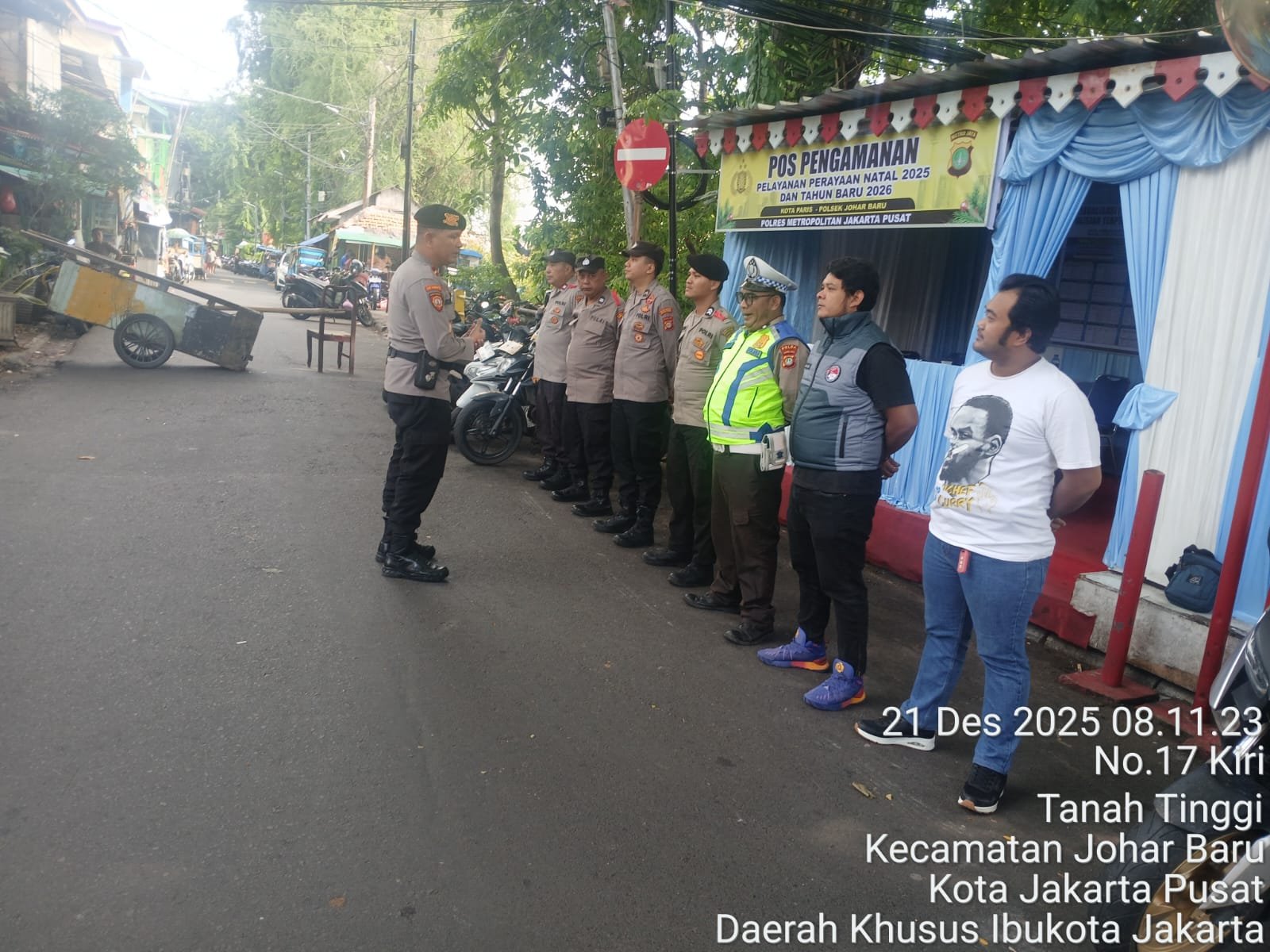 Jakarta Pusat — Jajaran Polsek Johar Baru menggelar apel personel Pos Pengamanan (Pospam) dalam rangka pengamanan perayaan Natal 2025 dan Tahun Baru 2026 (Nataru). Apel dan arahan pimpinan (APP) tersebut dilaksanakan pada Minggu (21/12/2025) pukul 08.15 WIB di Pospam Kota Paris, Johar Baru, Jakarta Pusat.