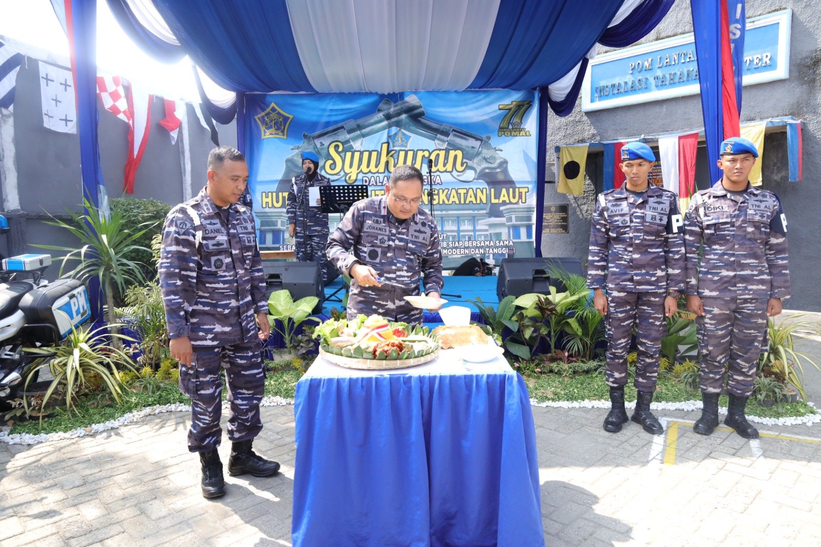 Setelah acara pemusnahan barang bukti selesai dilaksanakan, dilanjutkan dengan acara Syukuran Hari Ulang Tahun Polisi Militer Angkatan Laut yang Ke-77 tahun yang diawali dengan pembacaan do’a dan pemotongan tumpeng oleh Danlantamal I.