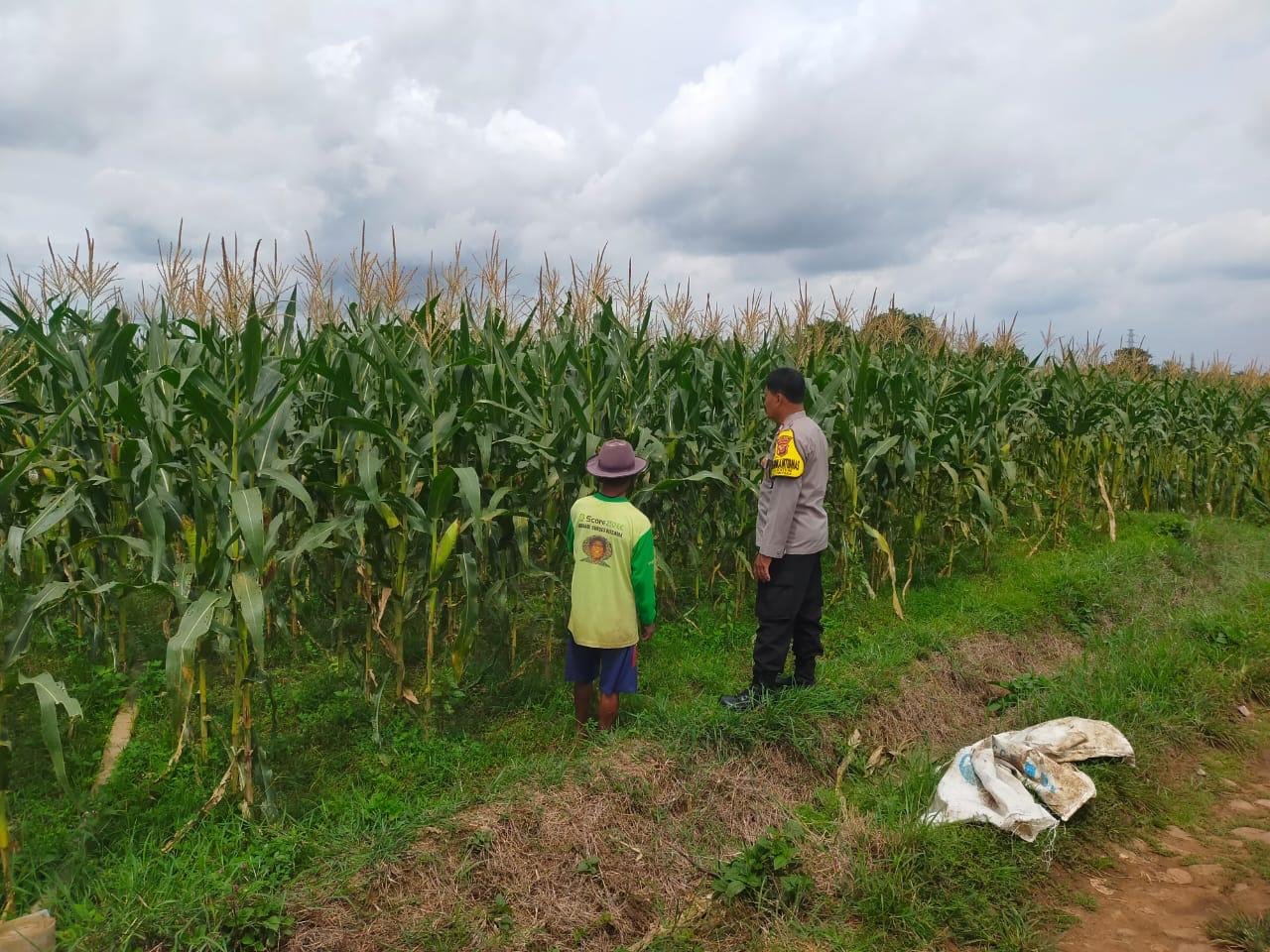 Bhabinkamtibmas Polsek Campaka melakukan pendampingan ketahanan pangan warga di bidang pertanian jenis jagung dan sayuran di Kampung Krajan, Desa Benteng, Kecamatan Campaka, Kabupaten Purwakarta.