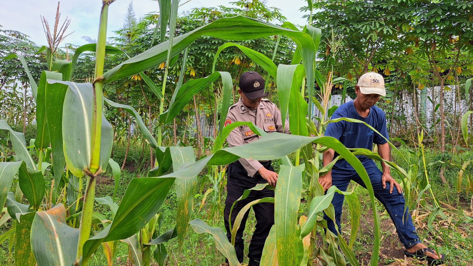Bhabinkamtibmas Polsek Sukatani melakukan pendampingan ketahanan pangan warga di bidang pertanian jenis jagung dan sayuran di Desa Sukatani, Kecamatan Sukatani, Kabupaten Purwakarta.