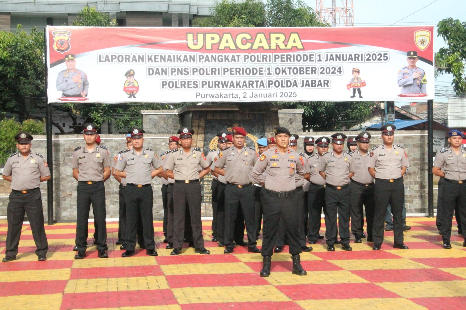 Upacara kenaikan pangkat tersebut digelar di lapangan apel Mapolres Purwakarta, Jalan Veteran, Kelurahan Ciseureuh, Kabupaten Purwakarta itu dipimpin langsung Kapolres Purwakarta, AKBP Lilik Ardiansyah, pada Kamis, 2 Januari 2025.