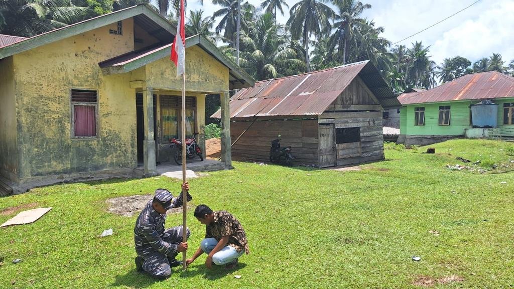 TNI AL, Simeulue,- Bintara Pembina Potensi Maritim (Babinpotmar) Pangkalan TNI AL Simeulue sosialisasikan kepada warga di 4 Kabupaten untuk mengibarkan bendera merah putih sepanjang bulan Agustus 2023, Sabtu (05/08/2023).