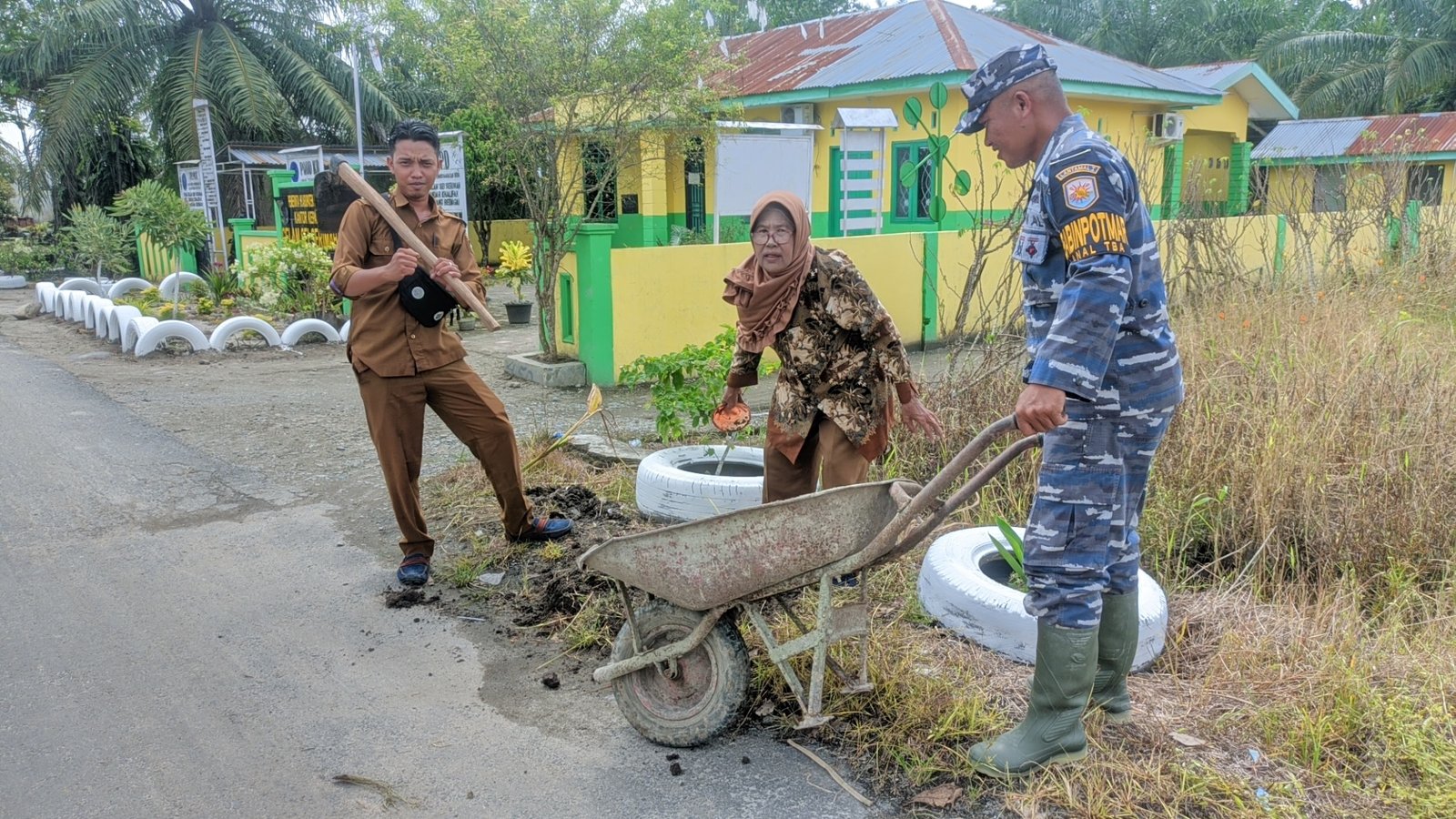 TNI AL, Tanjung Balai,- Babinpotmar Posal Bandar Khalifah Lanal TBA Serda Ariyadi bersama Ketua PKK Desa Gelam Sei Serimah Kecamatan Bandar Khalifah serta Perangkat Desa membudidayakan tanaman apotik hidup di pekarangan Kantor Desa, Senin (19/12/2022).