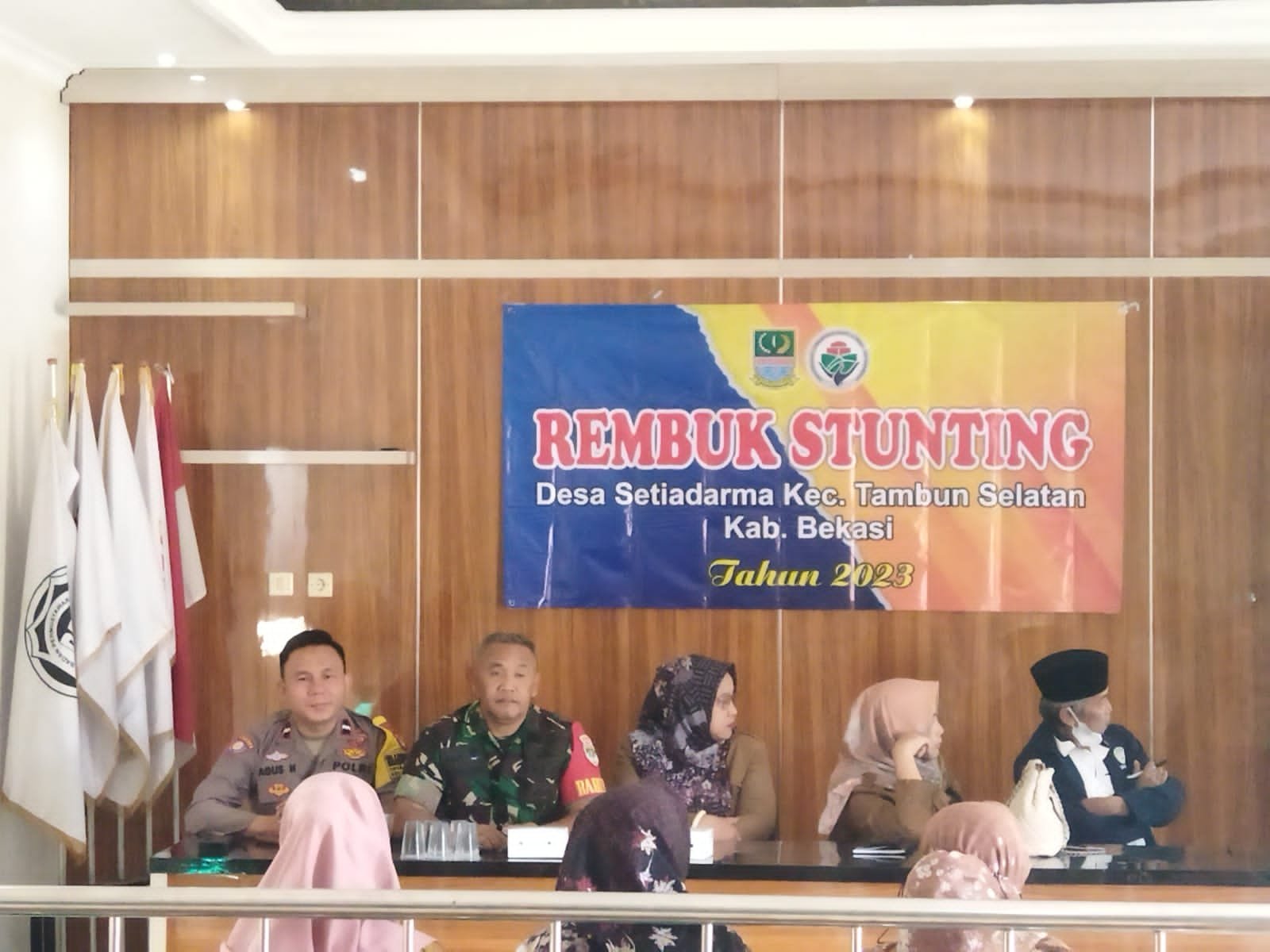 Peltu Boyatni Anggota Koramil 01 Tambun Hadiri Rembuk Stunting Kegiatan tersebut di buka di Aula Kantor Desa Setiadarma Jalan Setiadarma 2 RT 01 RW 02 Dusun III Kampung Darmajaya Desa Setiadarma Kecamatan Tambun Selatan Kabupaten Bekasi. Pada 5/9/2023.