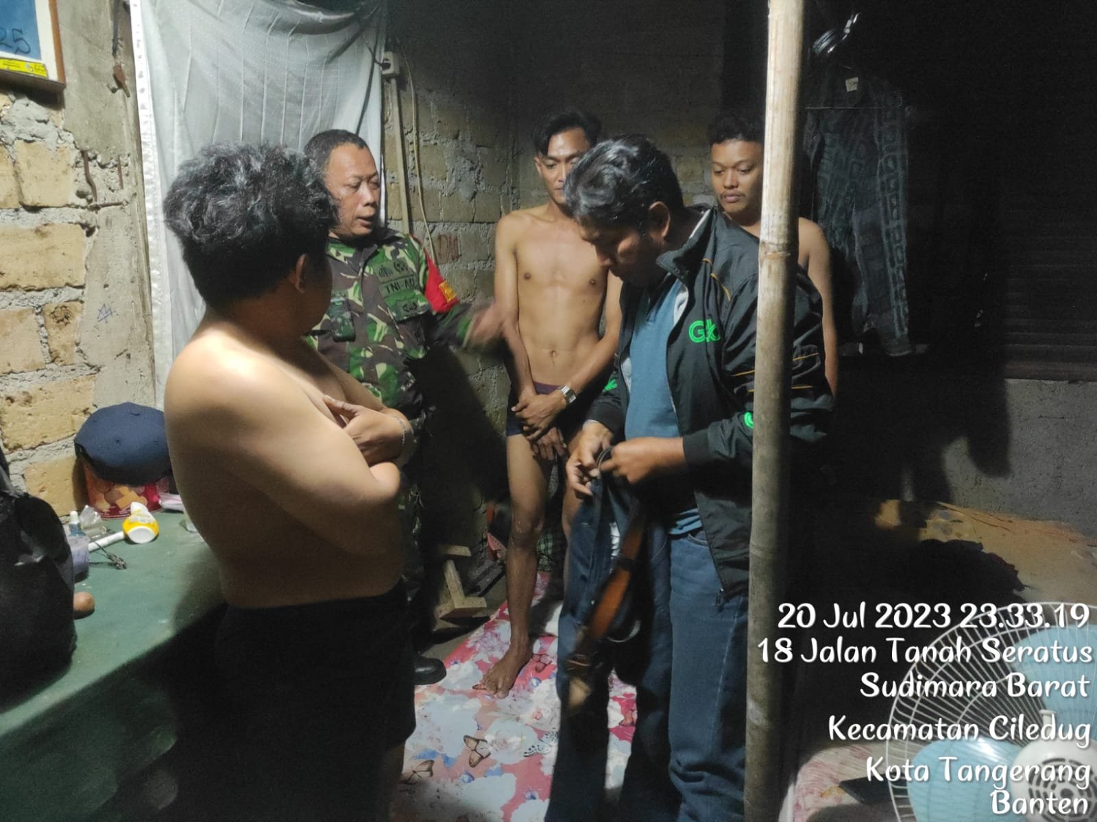 Kodam Jaya, Tangerang – Berkat adanya lapor cepat dari warga, Babinsa Sudimara Barat, Koramil 04/Ciledug, Kodim 0506/Tgr berhasil menggerebek sekelompok pemuda yang di duga sedang melakukan pesta Narkoba. penggerebekan di lakukan bersama Ketua RT dan warga di dampingi Babinsa Sudimara Barat di bilangan Jalan Rawasalak RT 02/011 Kelurahan Sudimara Barat Kecamatan Ciledug Kota Tangerang, Kamis malam (20/07/2023).
