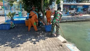 Babinsa Koramil 04/Kepulauan Seribu Kodim 0502/JU Koptu Elriyan Hakim bersama wargan dan anggota Penanganan Prasarana dan Sarana Umum ( PPSU ) Kabupaten Kepulauan Seribu melakukan pembersihan di seputar Dermaga utama pulau Ptamuka Kelurahan Pulau Panggang Kecamatan Kepulauan Seribu Utara Kapupaten Kepulauan Seribu.